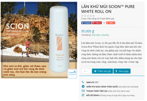 Tên đầy đủ của lăn khử mùi Scion là Scion Pure White Roll On đến từ tập đoàn Nu SKin.